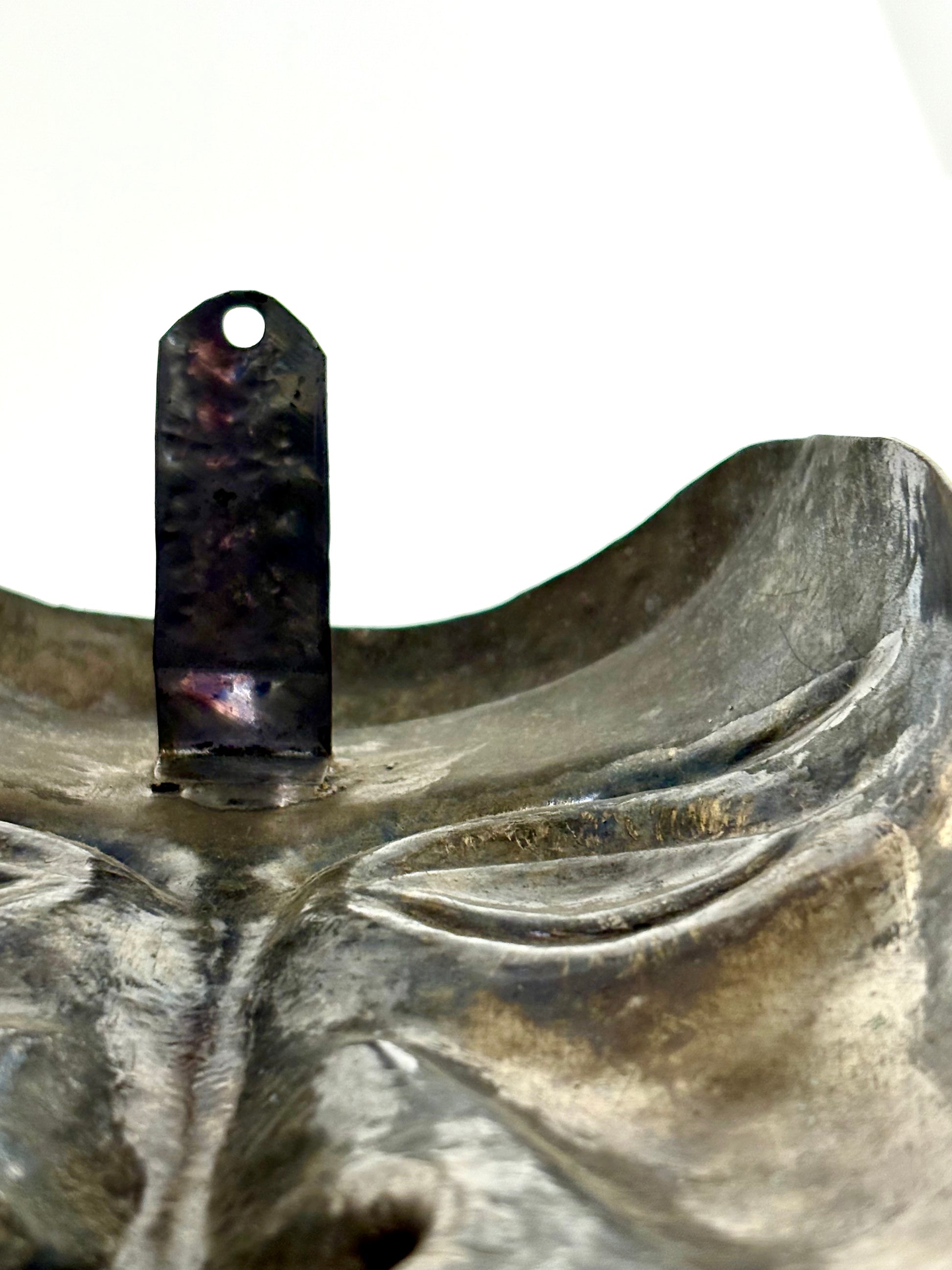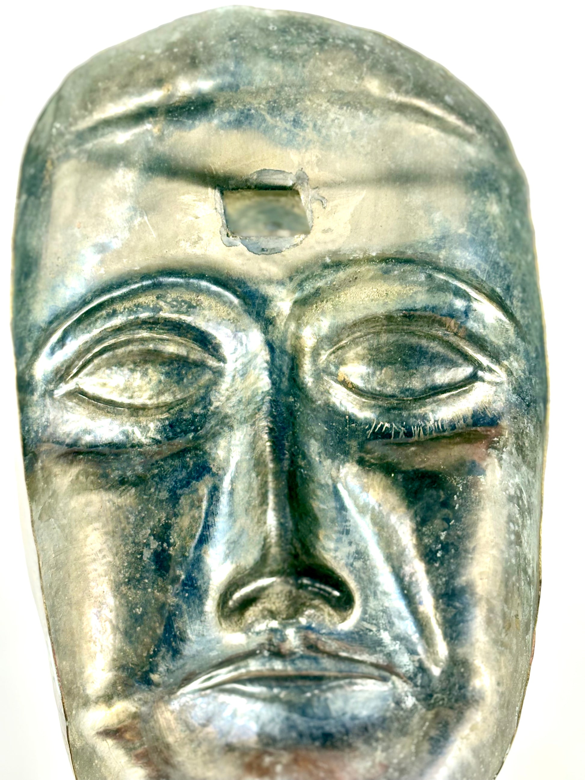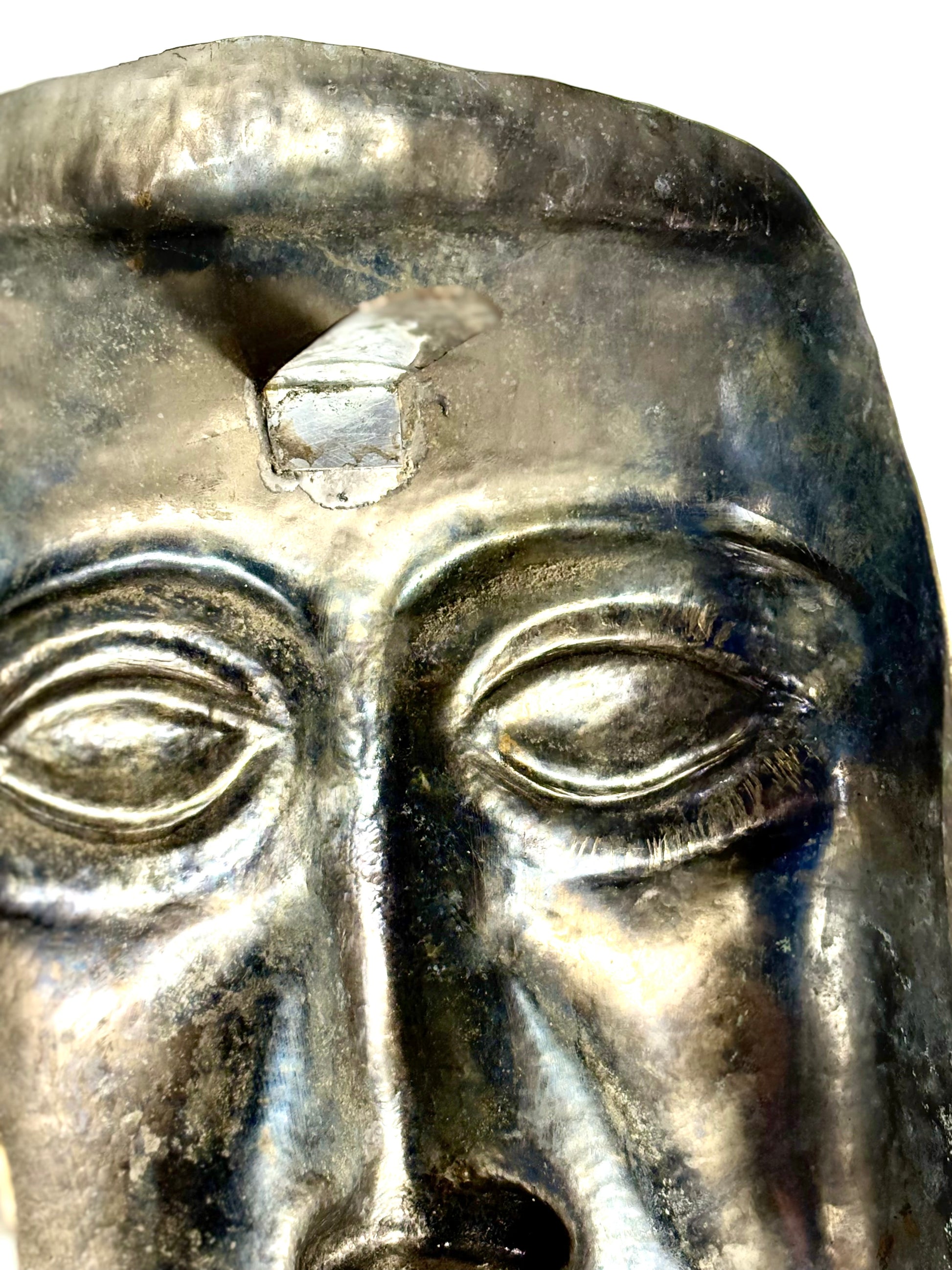 Abstrakte handgefertigte Aluminium Maske in gold mit Wandaufhängung