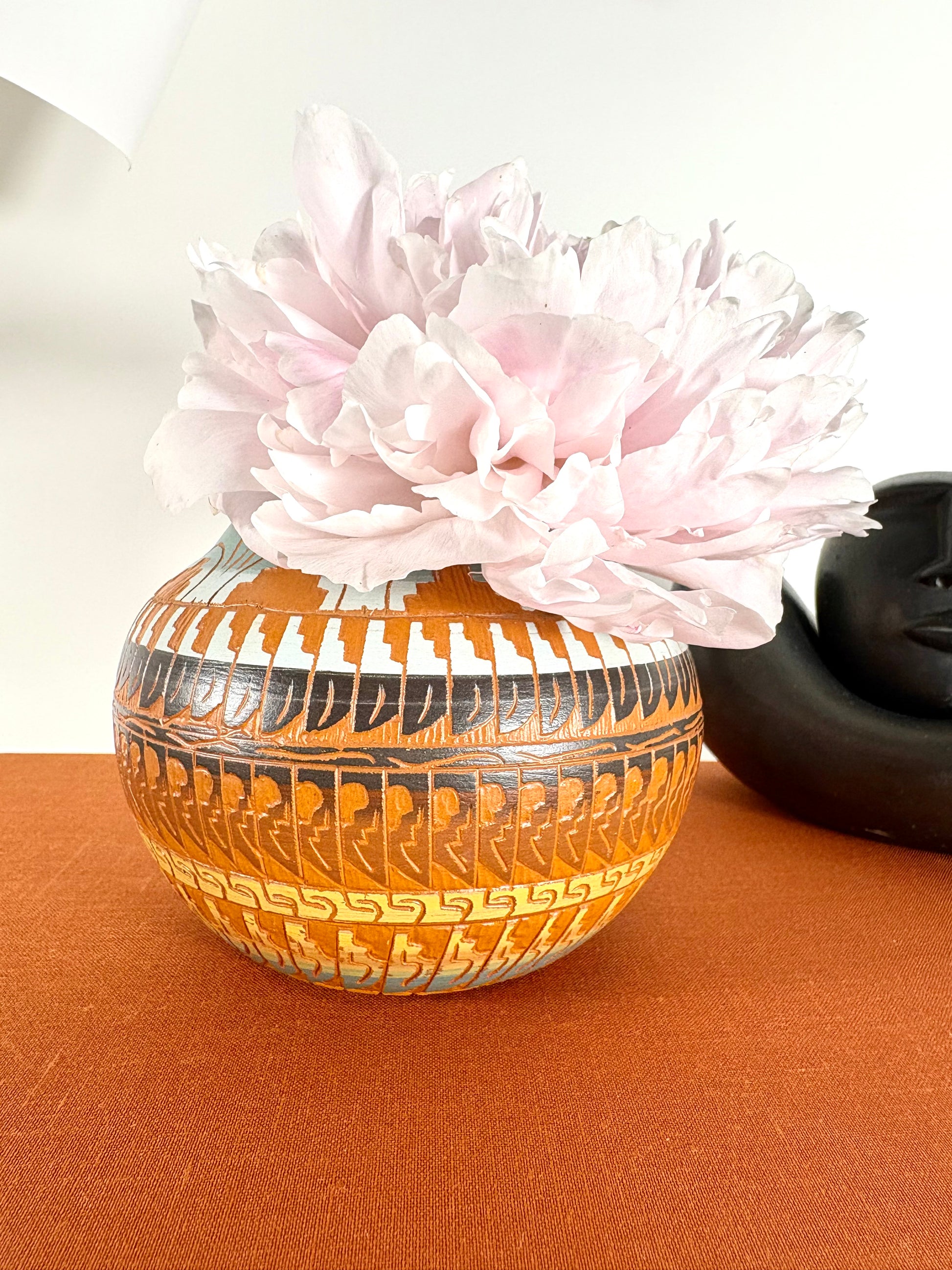 Handbemalte Native American Navajo Vase aus rotem Ton mit Signatur Dine Harrison Tom `95