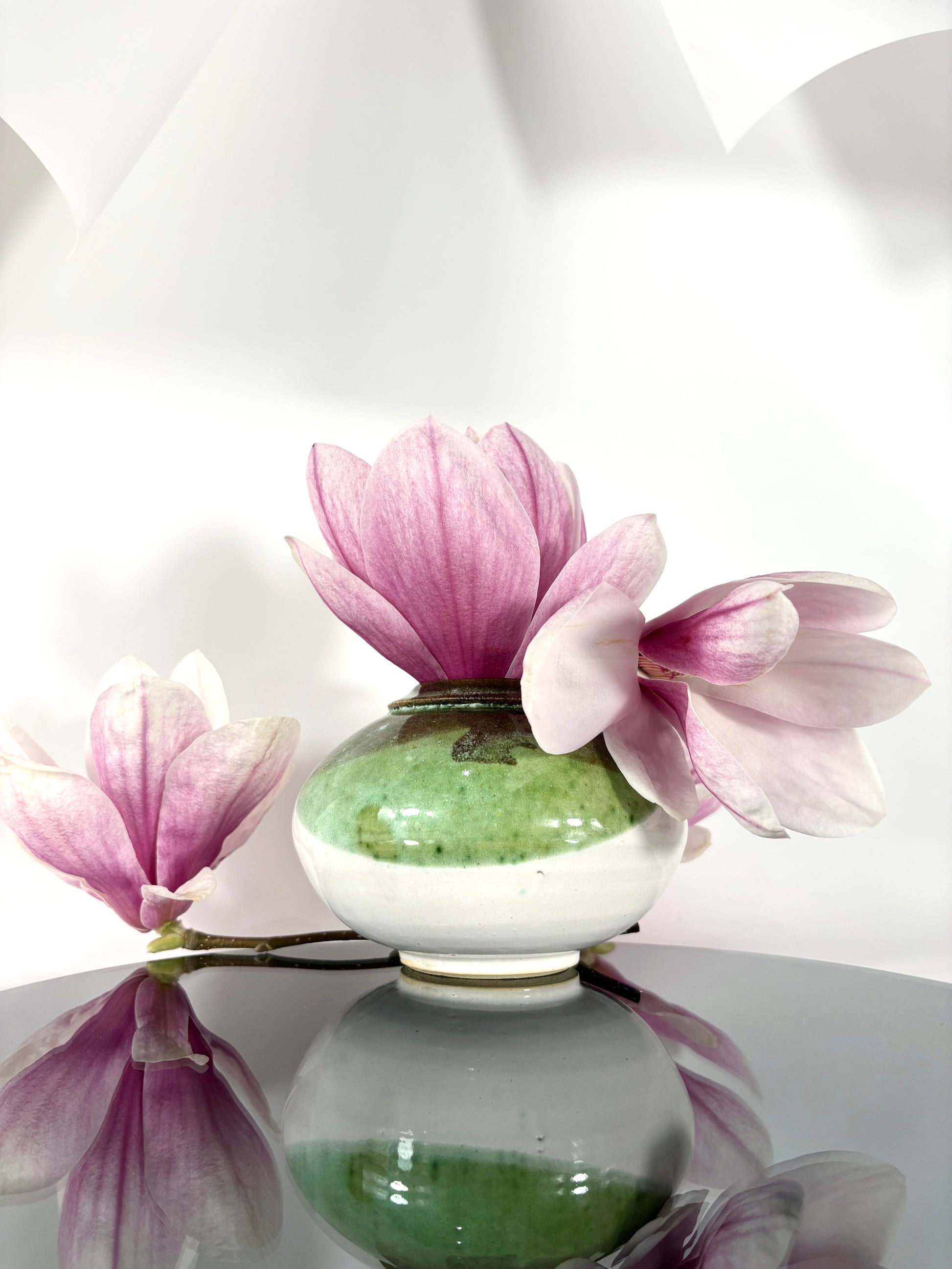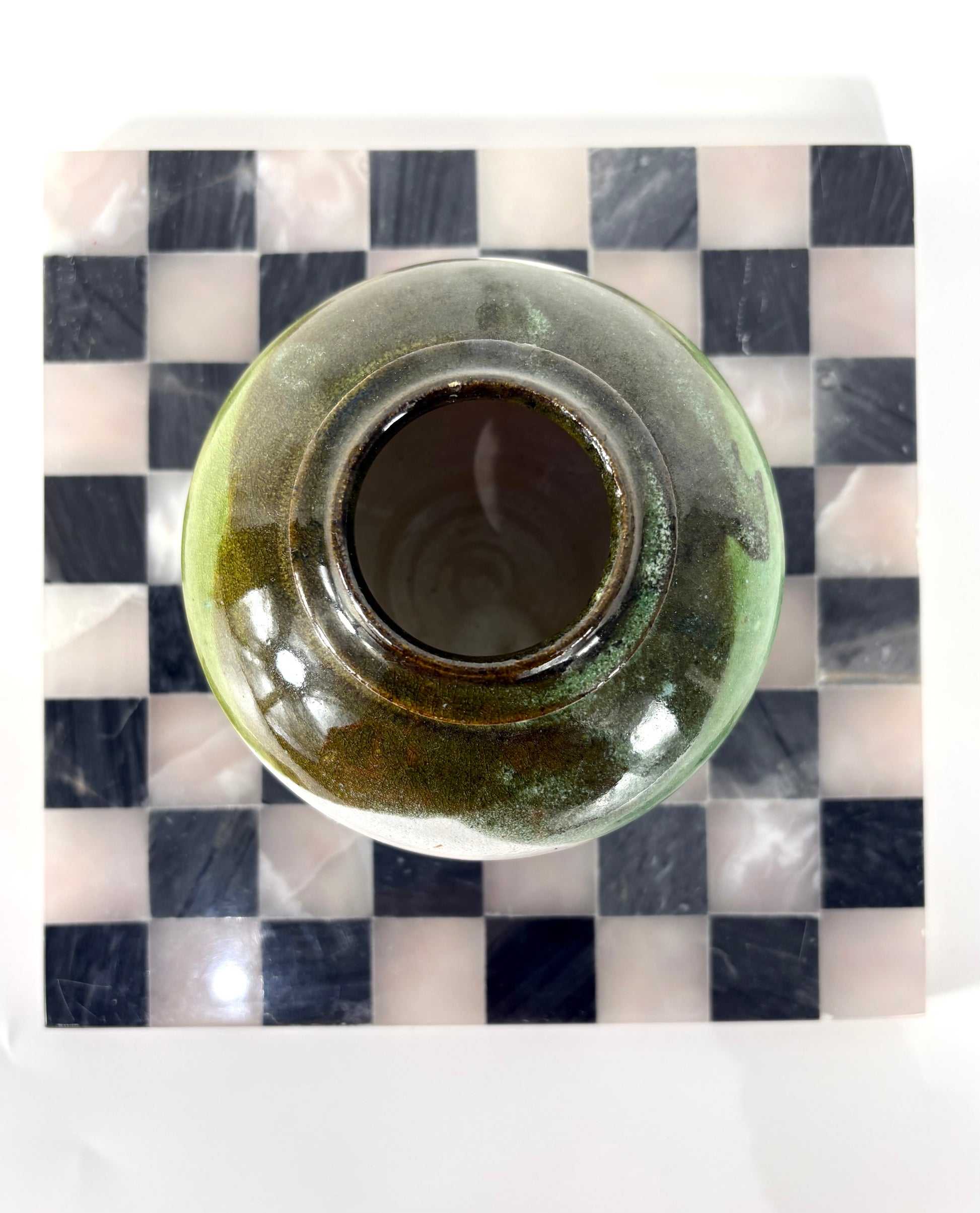 Handgefertigte Studio art pottery Vase in grün & weiß mit Signatur