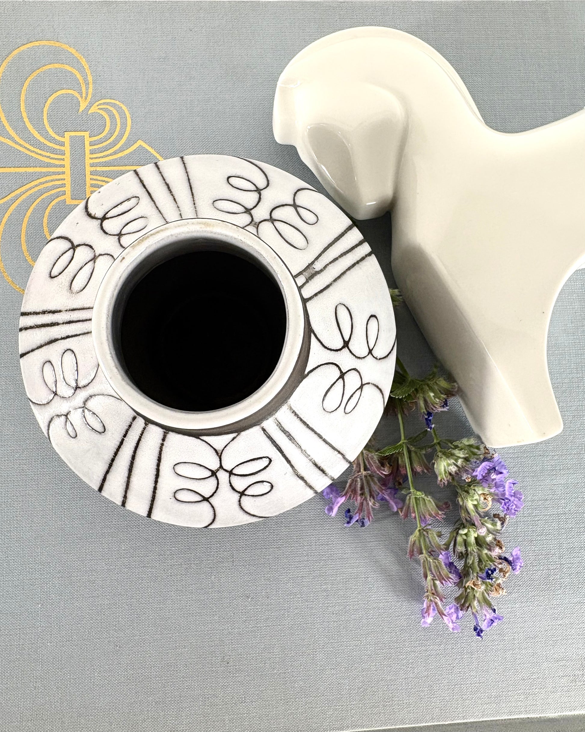 In meinem Online-Shop biete ich sorgfältig kuratierte Vintage-Fundstücke aus „every-era-all-together“ an. Von Mid Century Modern und Space Age, Boho und Eklektizismus, bis hin zu Art Deco, Hollywood Regency und Vintage aus Italien, Skandinavien oder Japan: Ich liebe alles, was ich kaufe.