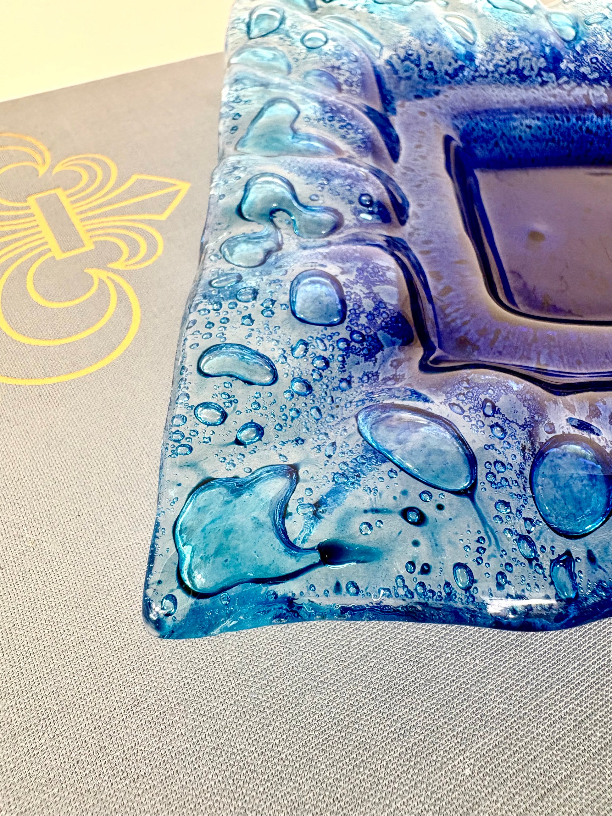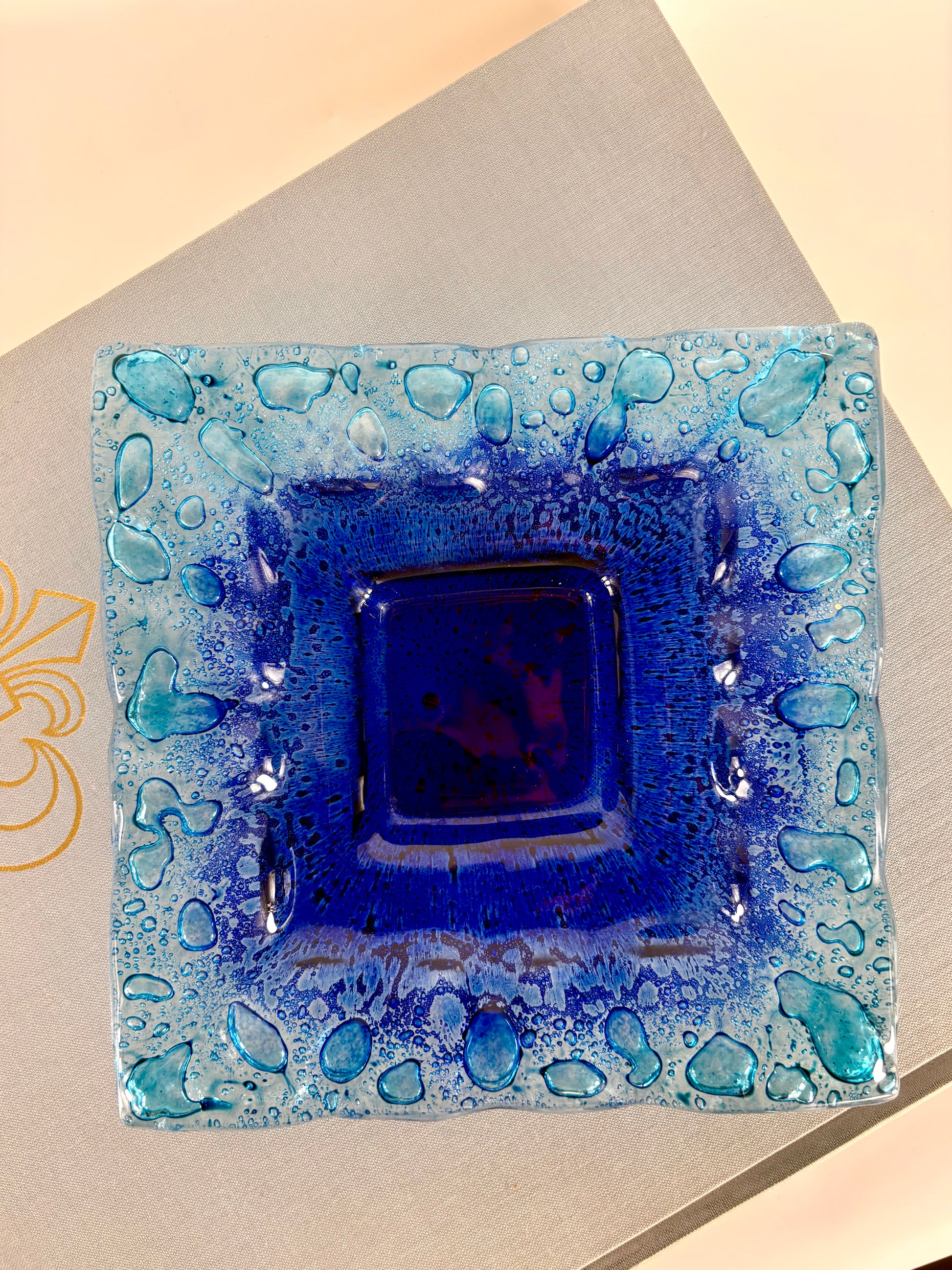 Italienische blaue Glasschale im Murano-Stil mit kunstvoll kontrollierten Blaseneinschlüssen