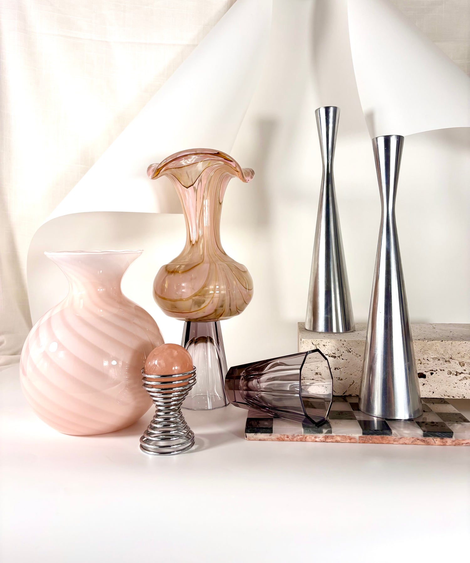 In meinem Online-Shop biete ich sorgfältig kuratierte Vintage-Fundstücke aus „every-era-all-together“ an. Von Mid Century Modern und Space Age, Boho und Eklektizismus, bis hin zu Art Deco, Hollywood Regency und Vintage aus Italien, Skandinavien oder Japan: Ich liebe alles, was ich kaufe.