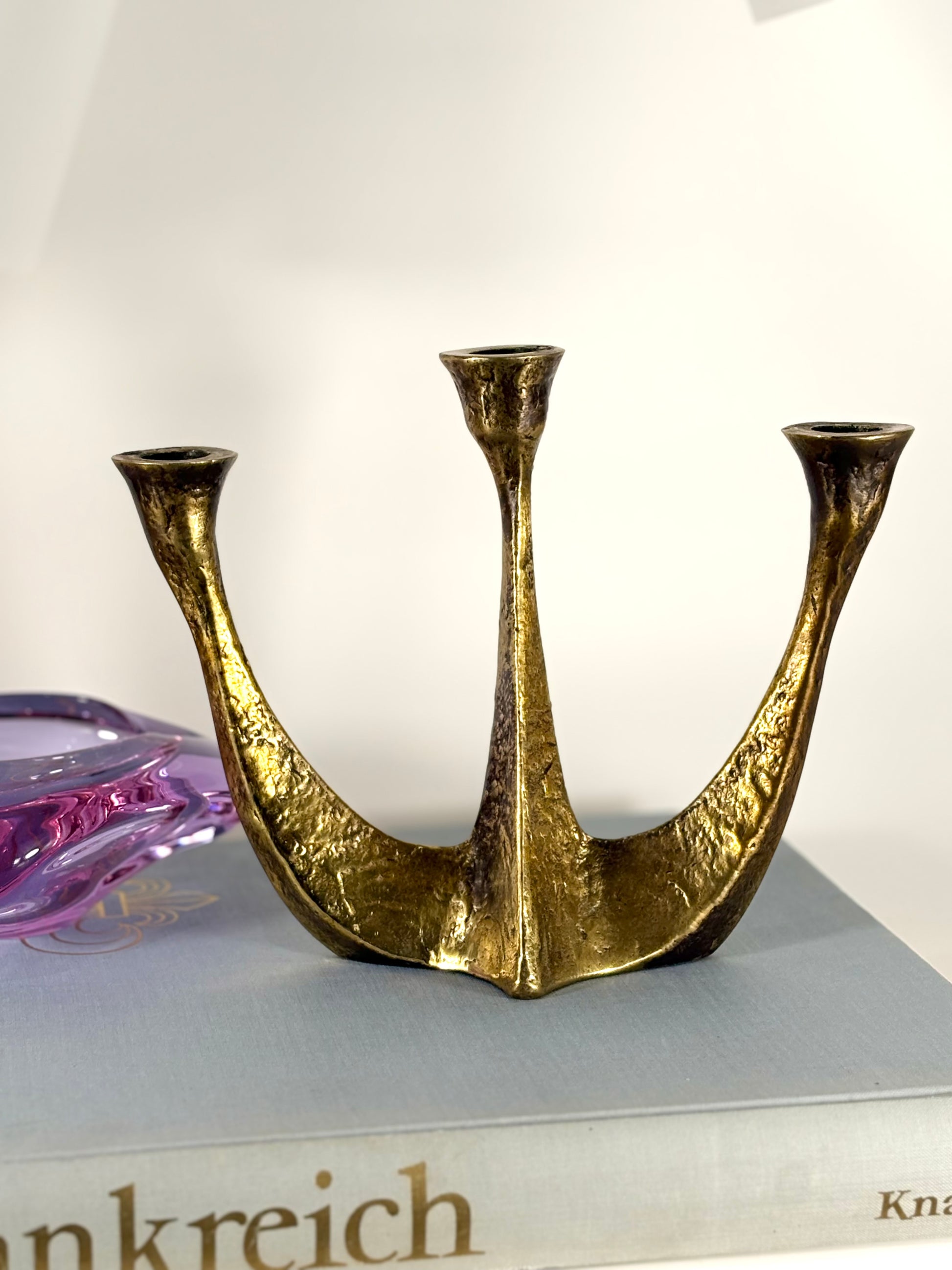 MCM Brutalist Messing Kerzenständer von Horst Dalbeck, West Germany 1970er Jahre